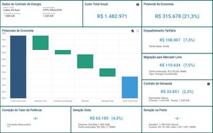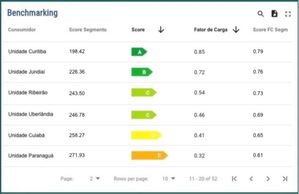 Selecione, ordene, filtre, classifique, consolide dados de consumo e potencial de economia de vários sites numa única visão